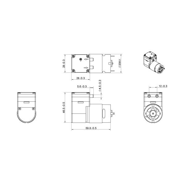 | AJK-B2801 | DC 5.0 V | < 900 mA | 4.0 L/min | -60~70 kPa | < 65 dB | Vacuum/Air |
